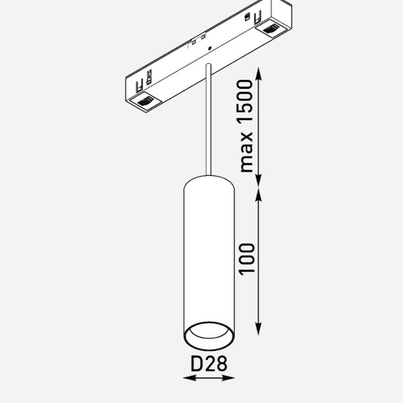 DALI cветильник ULIGHT подвесной для магнитного трека Tube 3W. Мощность: 3W. CRI: 90. Монтаж: Подвесной. Напряжение: 48V. Световой поток – 240Lm. Угол свечения: 24 град. Размеры: ?28*100мм. Гарантия 5 лет