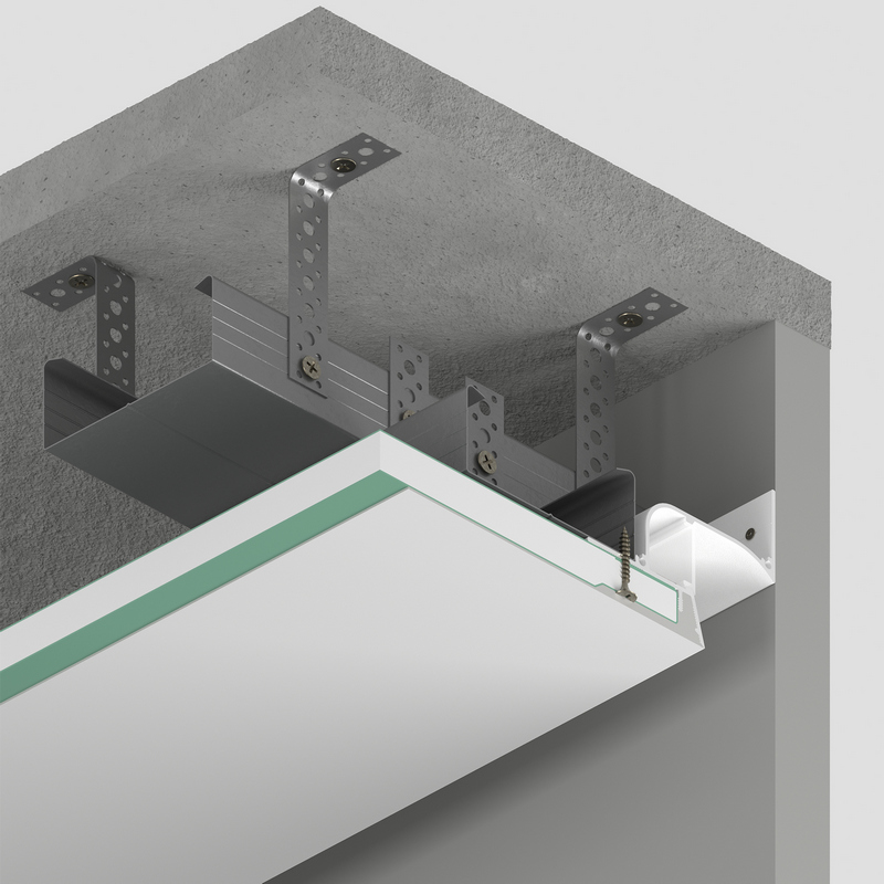 Алюминиевый профиль теневого шва, парящий потолок ULP25. Монтаж: встроенный в гкл. Габаритные размеры: H55xW66, 33xL2000мм. Материал: алюминий. Профиль крашеный. Цена с покраской за 1 метр. Заглушки комплектуются раздельно. |