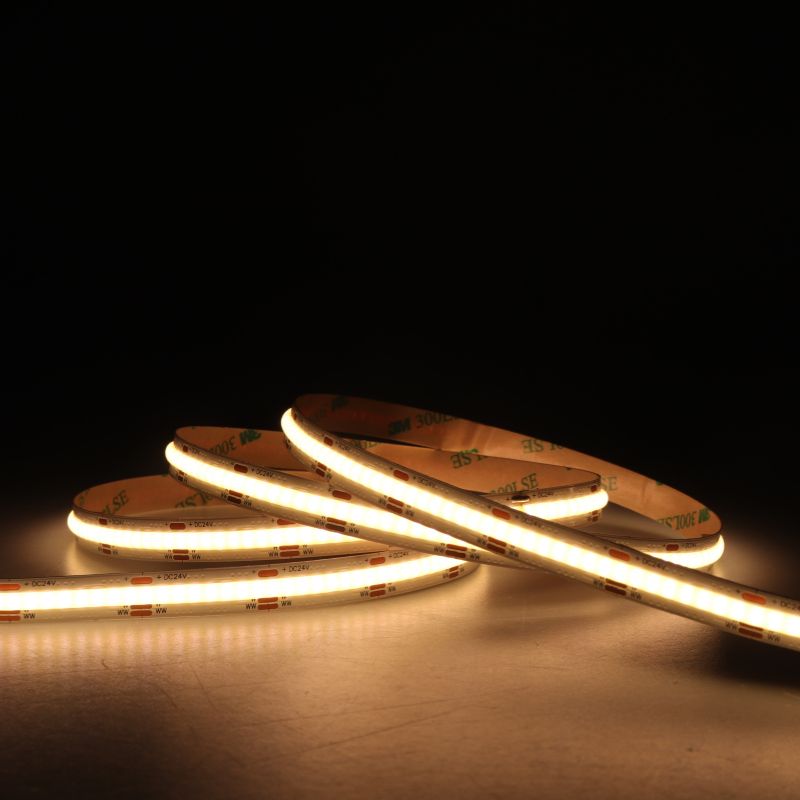 Tunable White мультибелая светодиодная лента сплошного свечения, COB светодиоды плотностью 576 шт. на метр, мощность 15 Вт/м, напряжение 24 В.
