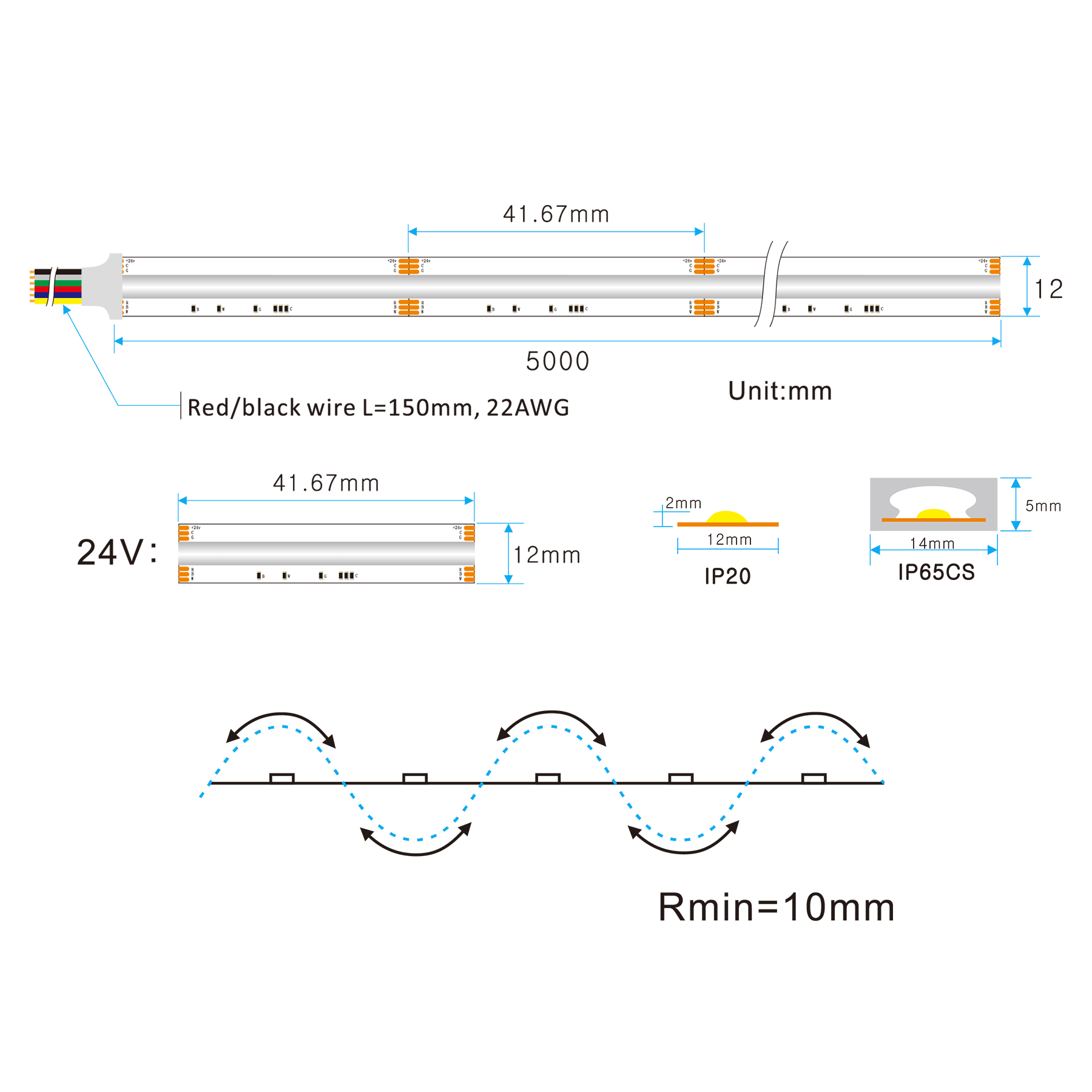 Ширина LED ленты 12 мм, кратность резки 41,67 мм.