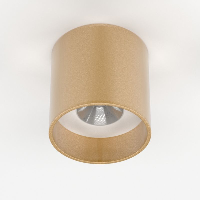 Светильник накладной ULIGHT Roll Цвет: золотой. Цвет декоративной: белый. Мощность: 12W. CRI: 90. Напряжение: 220V(встроенный драйвер). Цветовая температура: 3000К. Световой поток – 960Lm. Угол свечения 50 град. Размеры: ?80*80. Гарантия 5 лет