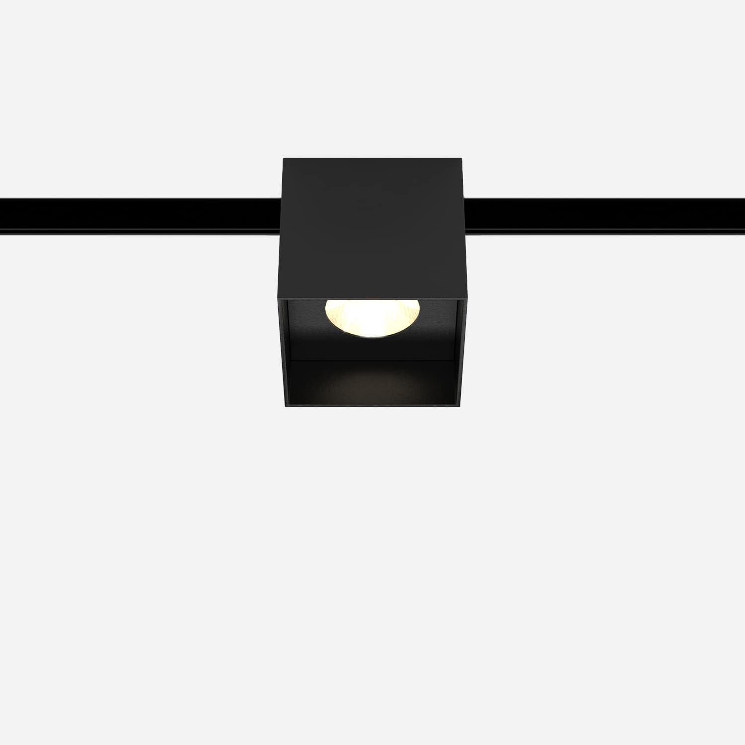 Трековый светильник в корпусе чёрного цвета с тёплым белым светом (3000K).
