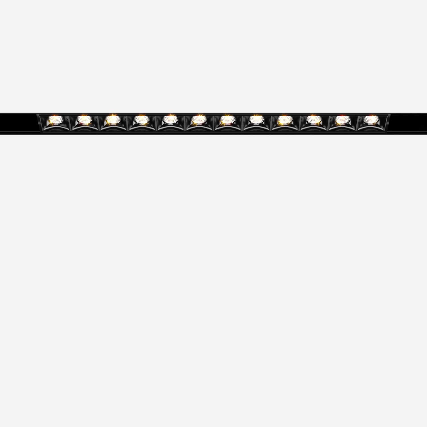 Трековый светильник в корпусе чёрного цвета с тёплым белым светом (3000K).