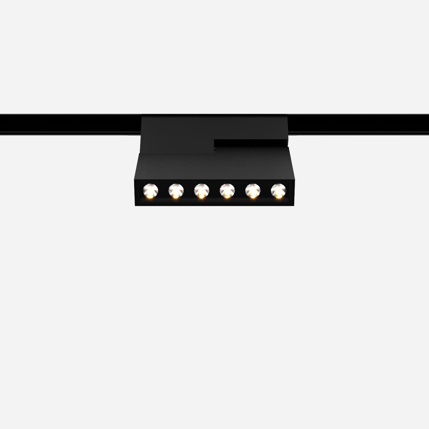 Трековый светильник в корпусе чёрного цвета с тёплым белым светом (3000K).