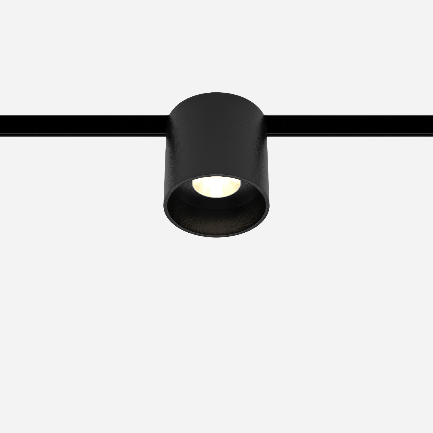 Трековый светильник в корпусе чёрного цвета с тёплым белым светом (3000K).