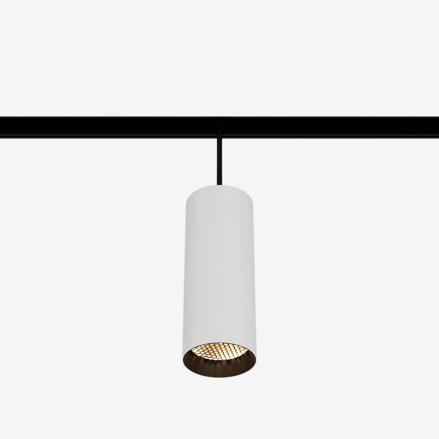 Трековый светильник в корпусе белого цвета с тёплым белым светом (3000K).