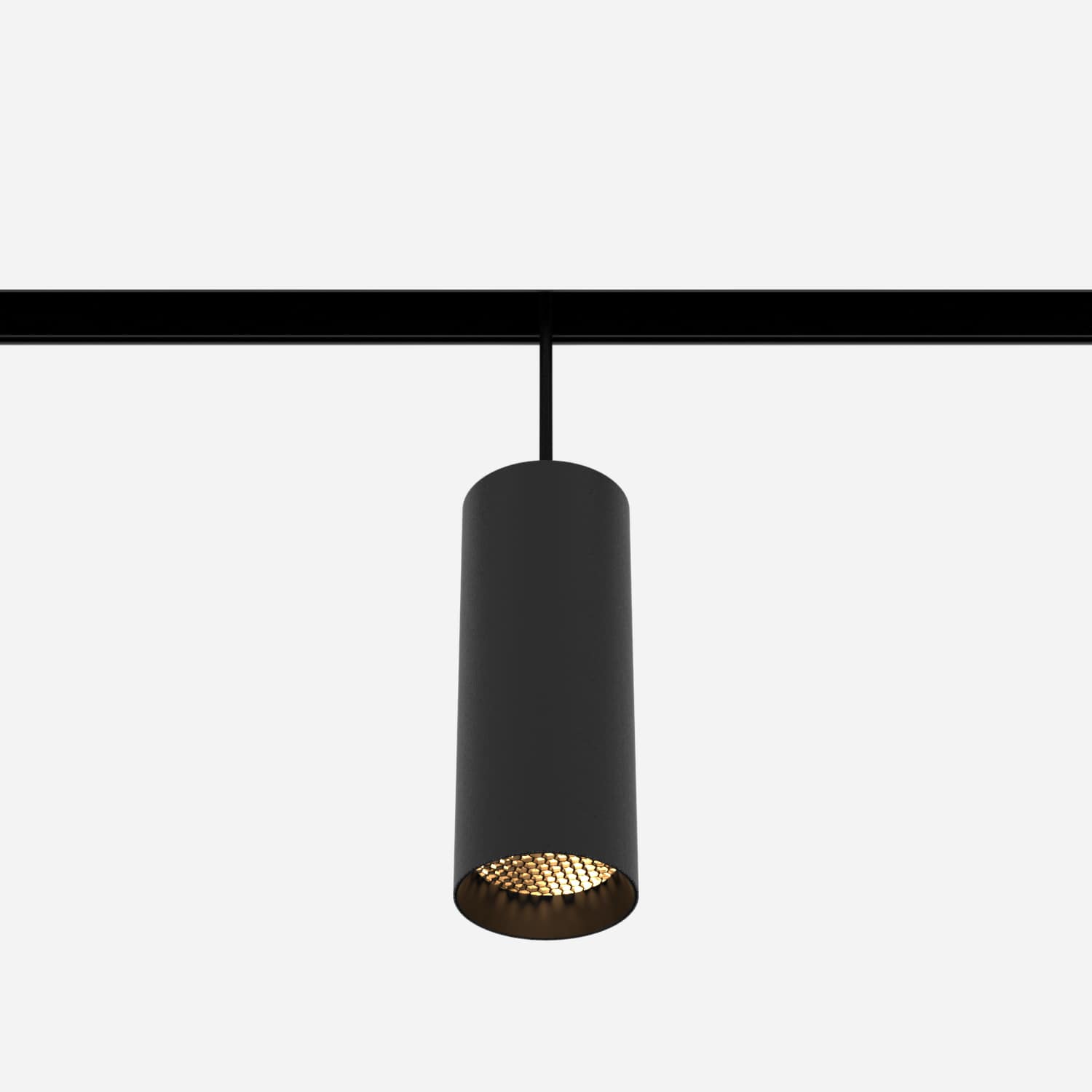 Трековый светильник в корпусе чёрного цвета с тёплым белым светом (3000K).
