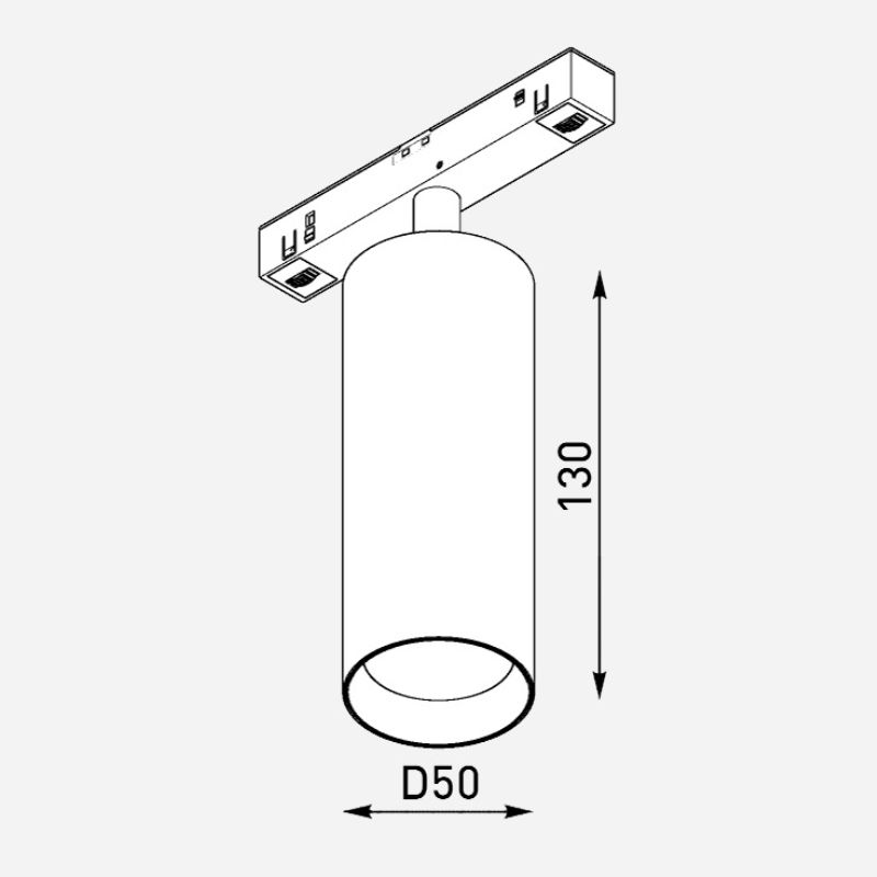 Светильник ULIGHT Not Spot50 11W для магнитного трека. Мощность: 11W. CRI: 90. Напряжение: 48V. Угол свечения 40 град. Световой поток – 880Lm. Размеры: ?50*130. Цвет рефлектора: black (антиблик) + сетка black UGR <9. Гарантия 5 лет