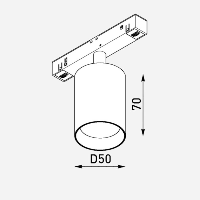 Светильник ULIGHT Not Spot50 7W для магнитного трека. Мощность: 7W. CRI: 90. Напряжение: 48V. Угол свечения 40 град. Световой поток – 560Lm. Размеры: ?50*70. Цвет рефлектора: black (антиблик) + сетка black UGR <9. Гарантия 5 лет