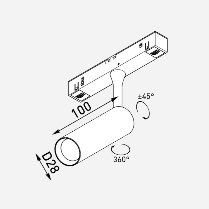 Светильник ULIGHT Spot 6W для магнитного трека. Мощность: 6W. CRI: 90. Напряжение: 48V. Угол свечения 40 град. Световой поток – 480Lm. Размеры: ?28*100. Цвет рефлектора: black (антиблик). Гарантия 5 лет