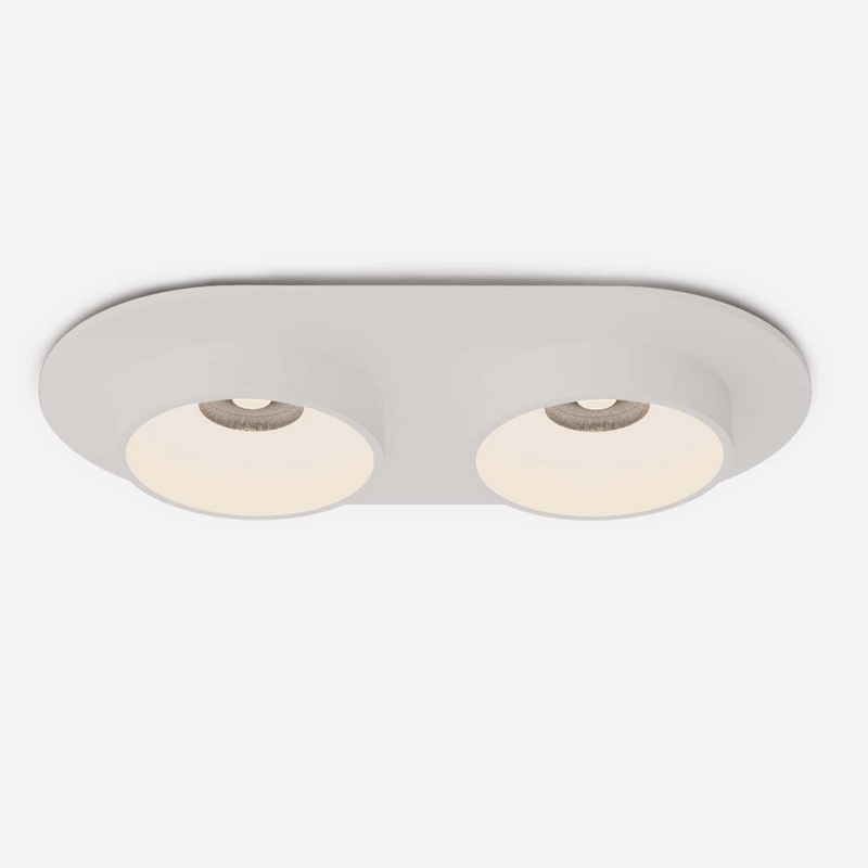 Roll80 in 1/4 Duo 24W — это мощный встраиваемый светильник с двумя источниками света по 12 Вт каждый (всего 24 Вт). Он обеспечивает яркое и равномерное освещение, отлично подходящее для помещений с высокими потолками. В отличие от версии 1/2, этот светильник выступает из потолка всего на 1/4 корпуса, что делает его визуально более компактным и аккуратным.