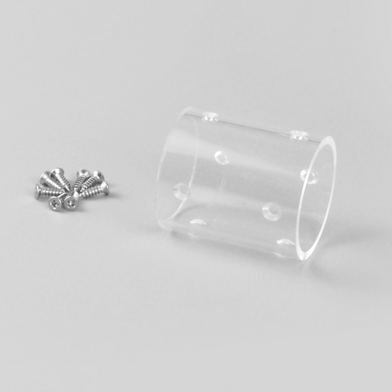 Поликарбонатный соединитель с торцевым входом для кабеля. Поликарбонатный соединитель с торцевым выходом - 1 шт. Саморезы - 8 шт.