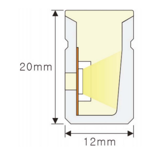 Гибкий герметичный неон IP67 (Side view S1220), сечение 12?20 мм. Светодиоды SMD 2835. Цвет свечения ТЕПЛЫЙ БЕЛЫЙ (3000 К), индекс цветопередачи CRI>80, световой поток 470 лм/м, угол излучения 115°. Мощность 15 Вт/м, питание 24 В. Максимальное последовательное подключение 14м. Класс пылевлагозащиты IP67. Размеры 5000?12?20 мм. Мин. отрезок 50 мм. Горизонтальный изгиб SIDE, минимальный радиус изгиба 200 мм. Катушка 5 м. Цена за 1 м. Гарантия 3 года.