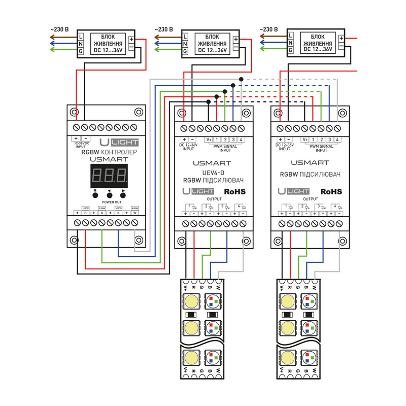 Usmart Repeater UEV4-D RGB+W Усилитель на DIN-рейку | 1 714 грн | Коробка 1 шт | шт |