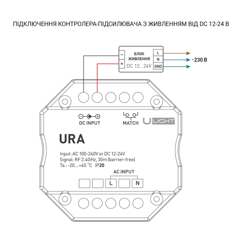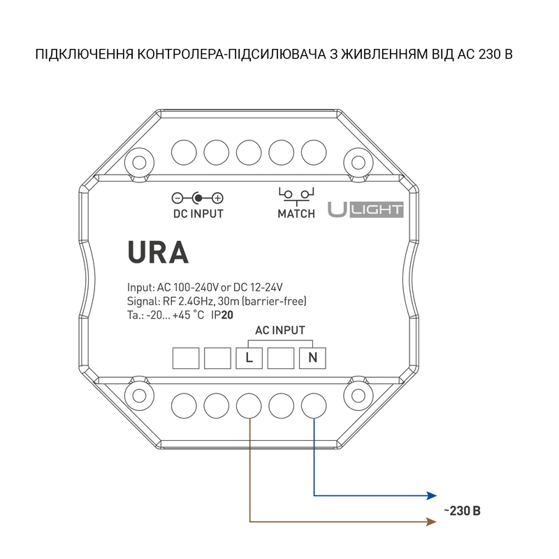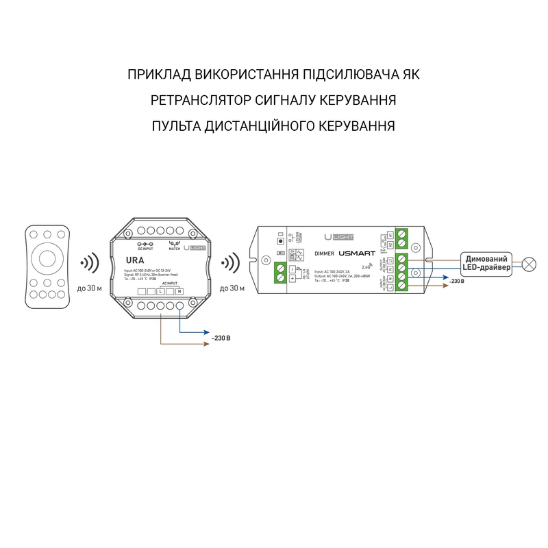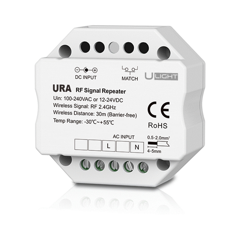 Беспроводной приёмо-передатчик радиосигнала 2.4G для расширения дальности приема сигнала диммеров и контроллеров серии USMART. Расширяет дальность приема сигнала до 30 метров, увеличивает его стабильность. Питание от 230В либо от 12-24В. Габариты устройства 52х52х26 мм, установка в стандартную монтажную коробку.