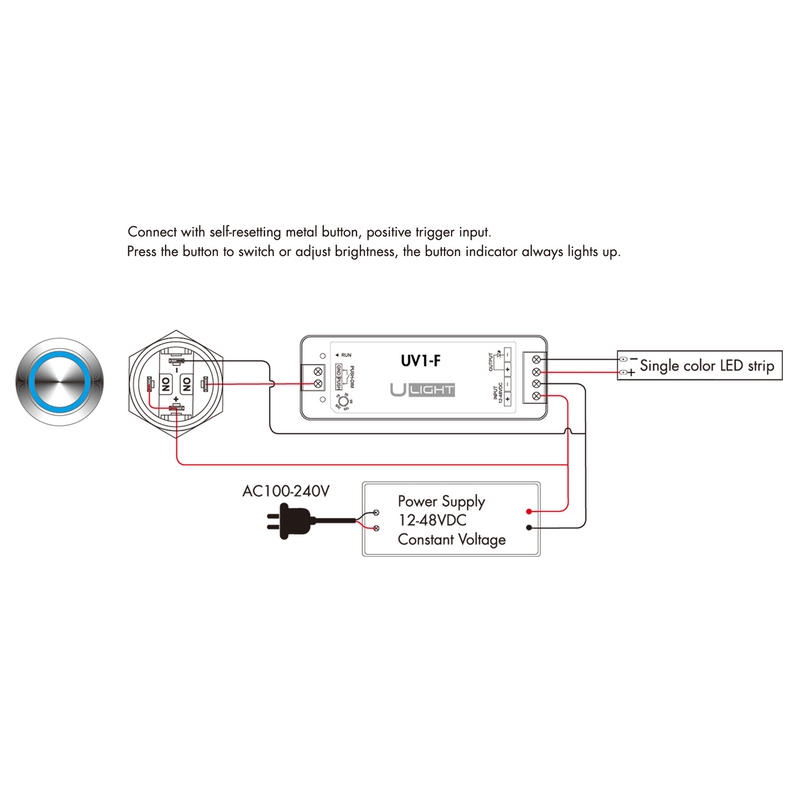Описание товара "Usmart UV1-F - Диммер управления одноцветной светодиодной лентой по ШИМ"